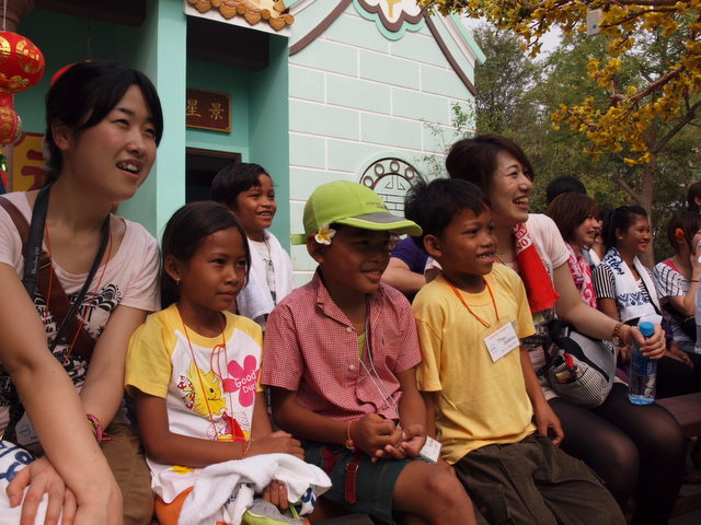 2日目はドリームズ・カム・トゥルー企画(夢を叶える企画)としてカンボジア文化村と夏祭りを企画しました。 子どもたちは普段、生活費が決まっているため行きたいところ、やりたいことは全てできるわけではありません。 カンボジア文化村では昔のカンボジアでの暮らしぶりやショーを見学しました。 展示を見ているときに英語で説明をしてくれ、成長を感じる場面も多々ありました。
